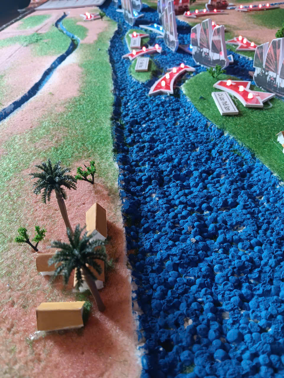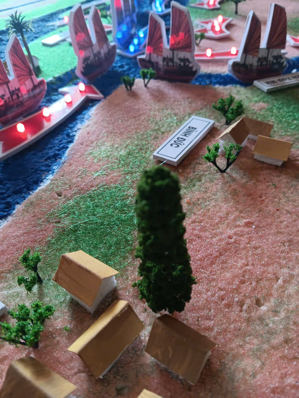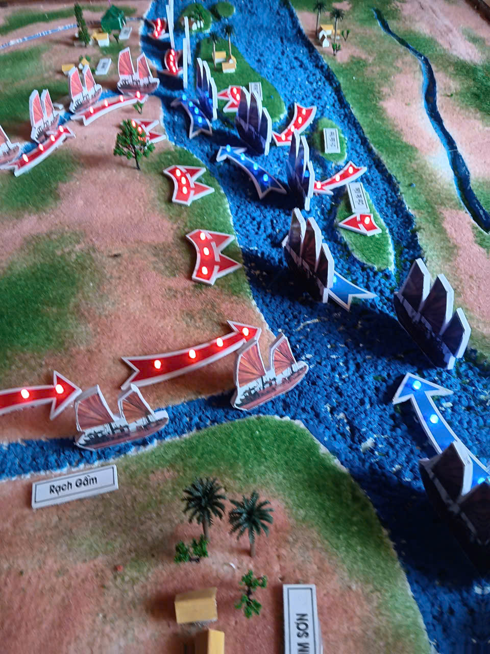 Tình huống chiến đấu: Mô phỏng cảnh quân Tây Sơn đồng loạt tấn công từ hai bờ và giữa sông, khiến quân địch hoảng loạn, thiệt hại nặng nề.